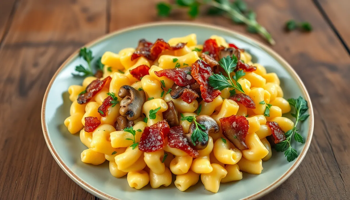 Truffle oil can introduce an indulgent twist. Lobster adds a touch of luxury, making this dish perfect for special occasions. Incorporating gourmet cheeses such as aged cheddar or gouda enhances flavor profiles significantly. Experimenting with sautéed mushrooms or caramelized onions can bring depth to the dish. Fresh herbs like thyme or basil offer aromatic freshness that complements the creamy texture. Each of these additions creates a unique culinary experience that redefines classic mac and cheese into a sophisticated meal.